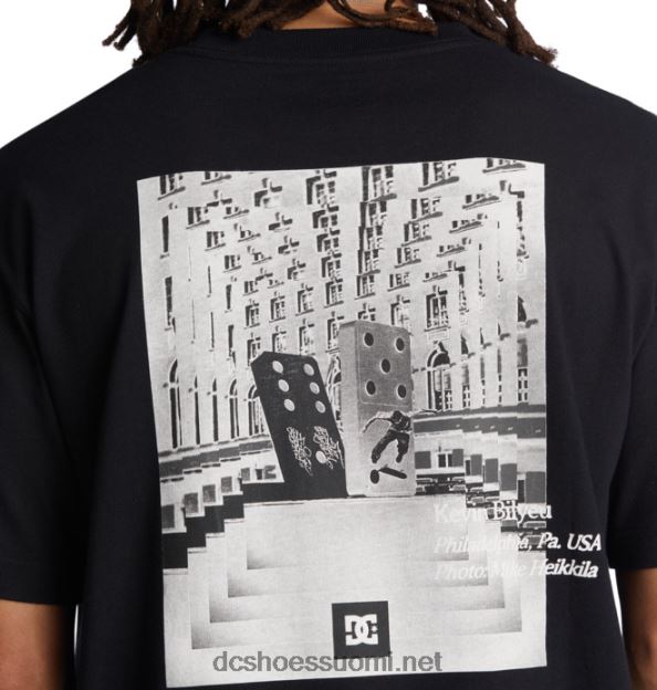 Täsmälleen ottaen bilyeu-t-paidassa on puhdas musta muotoilu ja dc:n ikoninen tuotemerkki edessä ja keskellä. leikattu pehmeästä, keskipainoisesta puuvillasta vakioistunnossa.